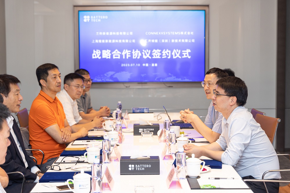 7月10日下午,兰钧新能源科技有限公司、CONNEXX SYSTEMS株式会社、上海煌能新能源科技有限公司和汇开绿能(深圳)新技术有限公司四方战略合作协议签约仪式举行。兰钧新能源CEO钟开富、储能事业部副总经理白峪豪,CONNEXX SYSTEMS株式会社社长塚本壽、事业部长肖宇生,上海煌能总经理刘鹏、副总经理秦浒佑、投资总监吴舒怀,汇开绿能总经理刘宜家等相关领导出席签约仪式。