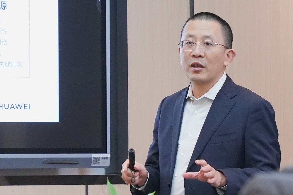 座谈会上,张峰等领导详细介绍了公司目前在新能源技术研发方面的最新进展,项目涵盖新型光伏、储能技术等多个领域,展示了华为在新能源领域的前瞻视野与创新实力。