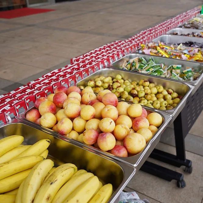 游园活动现场挂满了五彩灯笼,工作人员身穿传统汉服,美食品尝区摆有月饼、水果、零食等各种美食,目光所及之处都营造了充满文化气息的节日氛围。