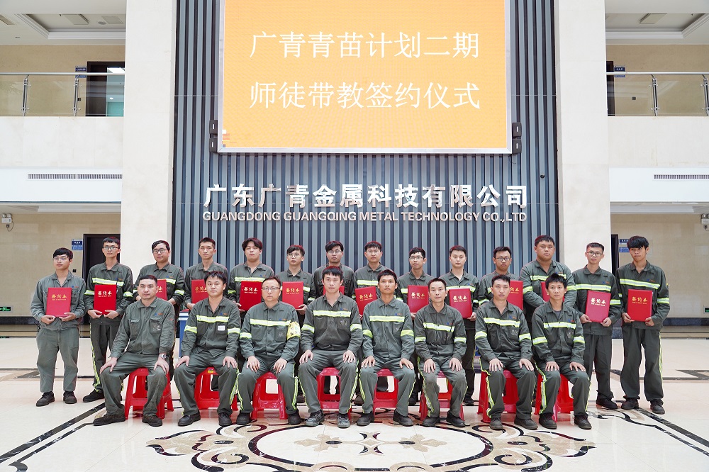 9月7日,广东广青金属科技有限公司人才培养“青苗计划”二期启动仪式在公司一楼会议室举行。公司党委副书记王大庆,常务副总经理刘光勇,相关部门负责人、带教师傅以及入选青苗计划二期的40名大学生参加仪式。