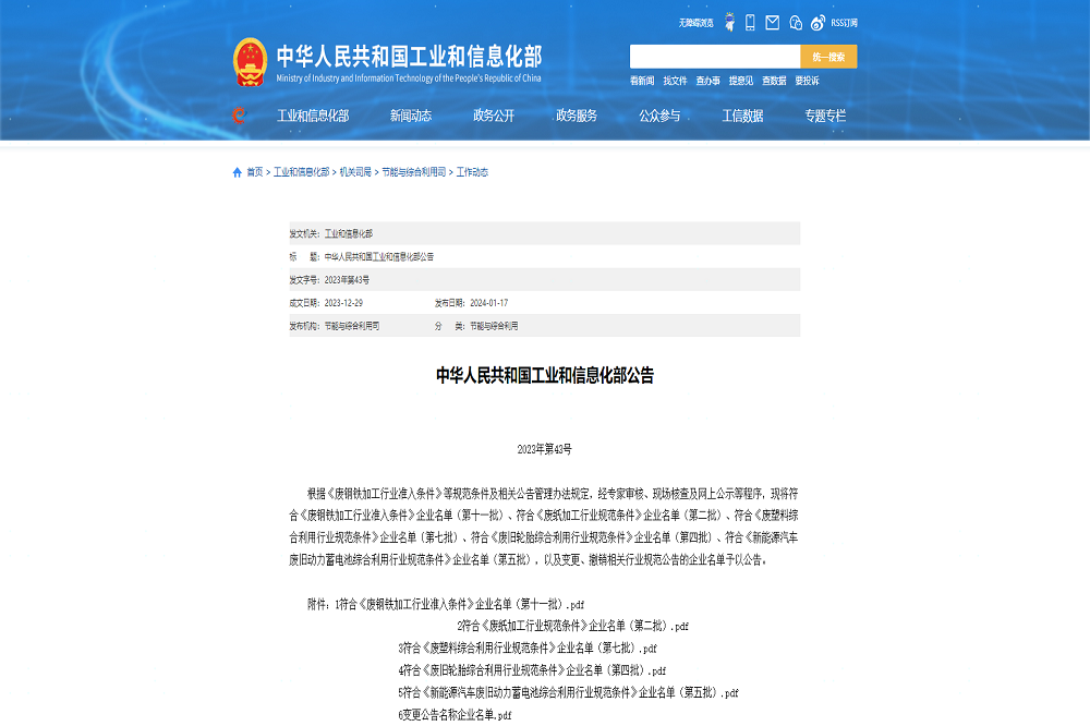 综合利用行业规范企业(白名单企业)资质认定