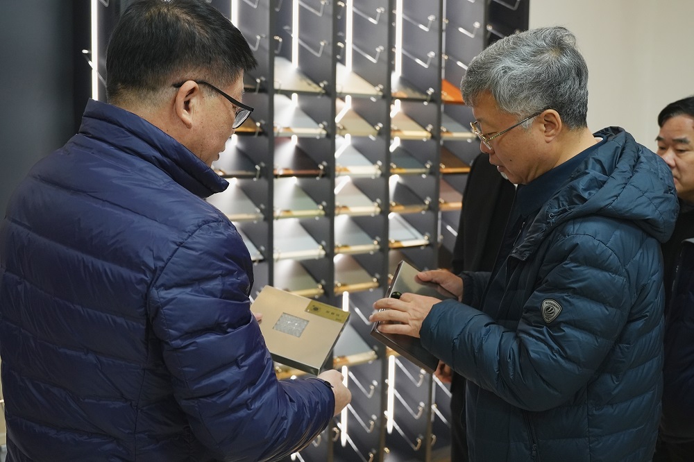 参观过程中,姜海洪、江来珠分别围绕企业发展情况、市场定位、未来规划、研发团队、科技创新等方面的内容进行了介绍。在家具展厅,滕佳材对彩色不锈钢装饰板产生浓厚兴趣,陈庆科介绍了产品应用领域。