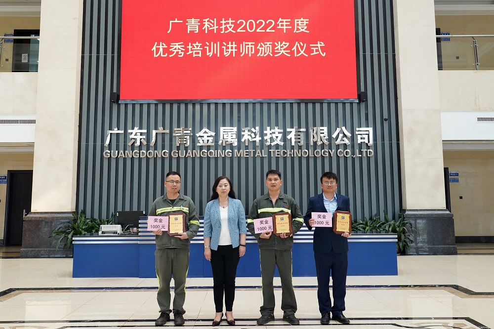 近日,广东广青金属科技有限公司举办了2022年度先进培训部门及优秀培训讲师颁奖仪式,对3个先进培训部门、5名优秀培训讲师予以表彰,对240名学习积极分子予以奖励。