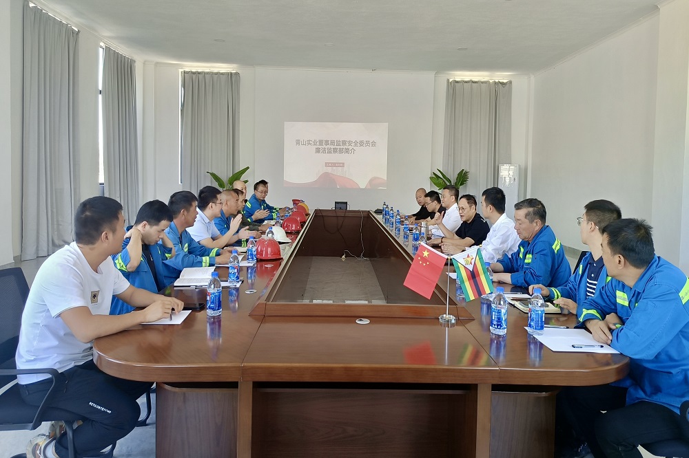 9月6日—13日,jinnianhui今年会实业董事局监察安全委员会廉洁监察部总经理翁时盼一行4人应浙江鼎森控股有限公司董事长陈上松的邀请,赴津巴布韦实地走访调研集团下属中非冶炼、鼎森钢铁、鼎森煤业等企业的廉洁监察工作,并与各公司主要管理人员进行座谈交流。
