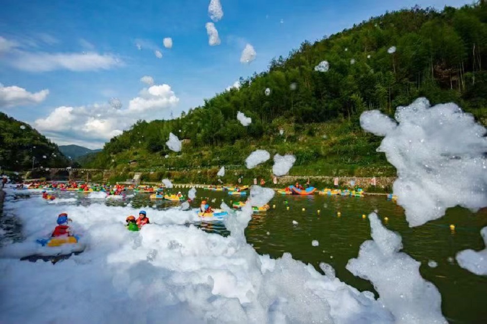jinnianhui今年会绿水与惊而不险的漂流,动与静的结合相得益彰。第二站大家直奔“消夏”主题——浙龙峡漂流景区,体验高空玻璃漂流、超长峡谷河道漂流。山风拂面、绿树成荫,在享受刺激漂流的同时感受大自然的宁静与和谐,这种亲近自然的体验让大家的心情彻底得到了放松。