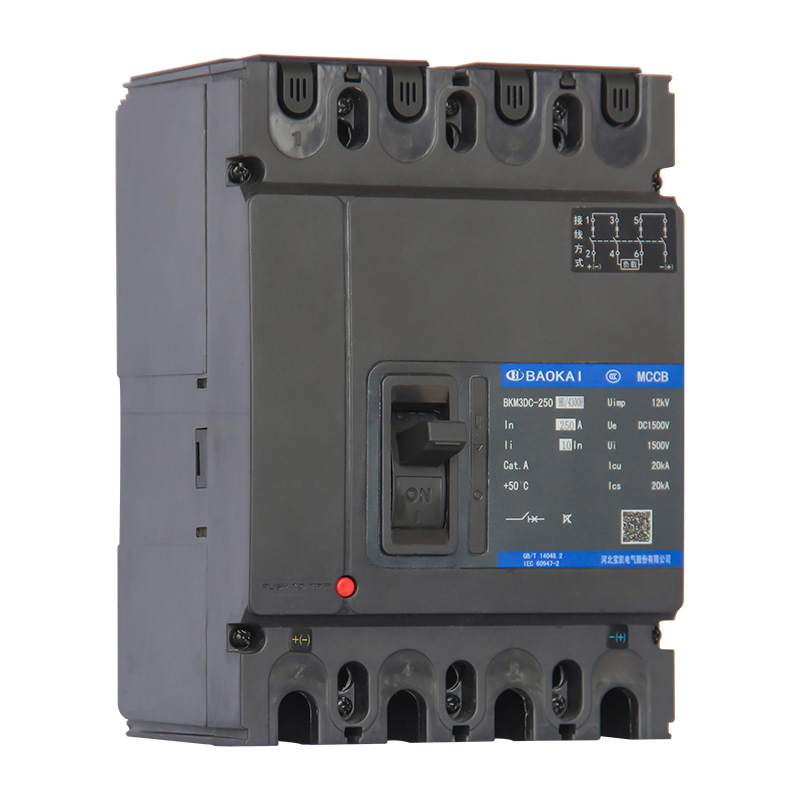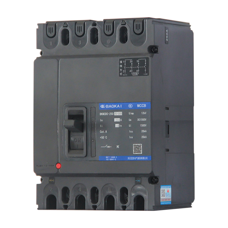 BKM3DC-HU系列直流塑料外壳式断路器适用于直流系统应用环境,额定绝缘电压DC1500V,额定工作电压至DC1500V,额定电流至500A的配电网络中。本系列断路器具有过载、短路保护功能,能保护线路和电源设备不受损坏。产品广泛用于新能源、电化学储能、电力发电、输变电、通讯、工控、地产、电力电源、轨道交通、工(公)建等行业中。本系列断路器具有隔离功能。本系列断路器执行标准:IEC 60947-1及GB/T 14048.1 《低压开关设备和控制设备 第1部分:总则》IEC 60947-2及GB/T 14048.2 《低压开关设备和控制设备 第2部分:断路器》